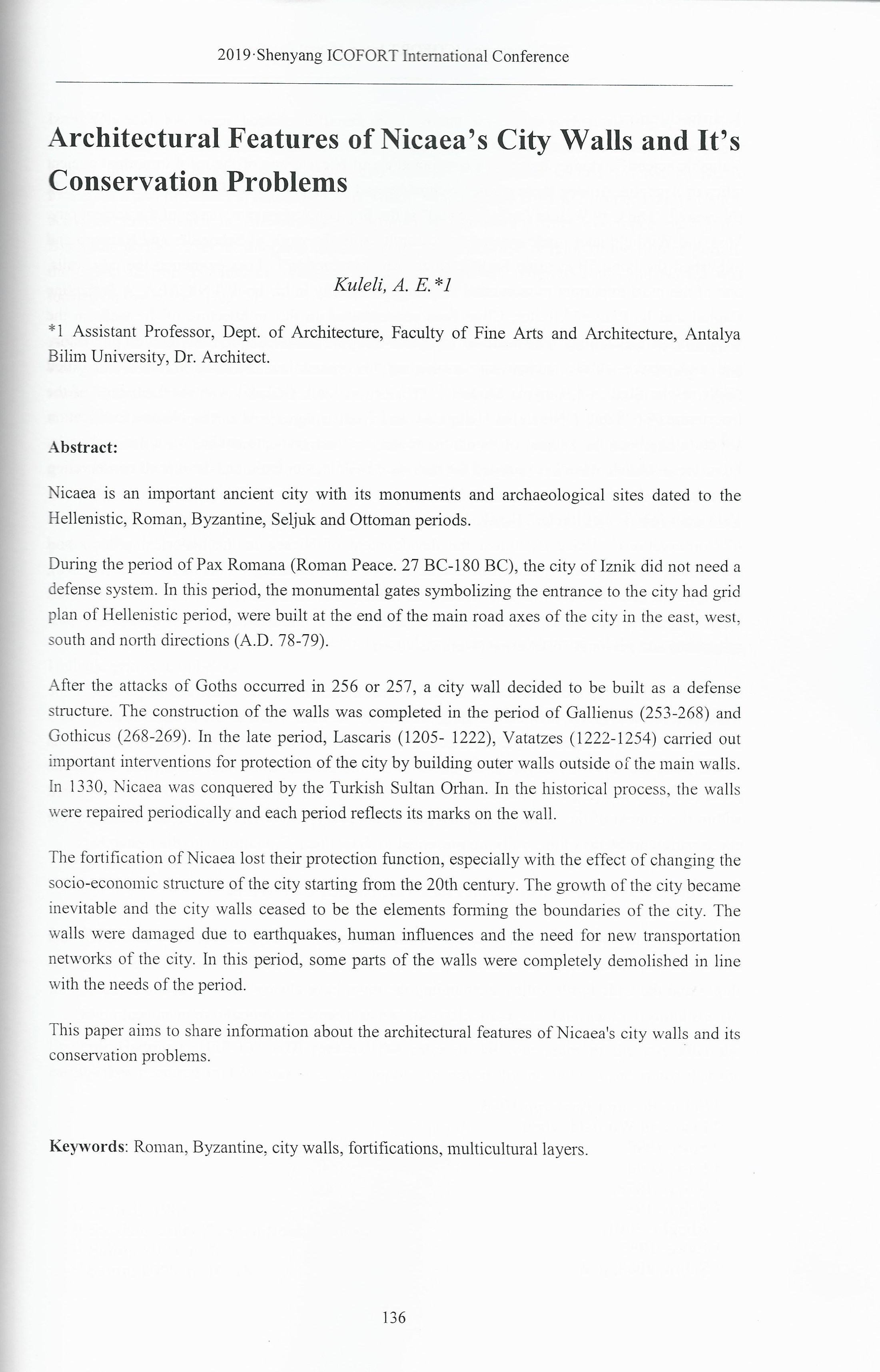 Architectural features of Nicaea’s city walls and It’s conservation problems