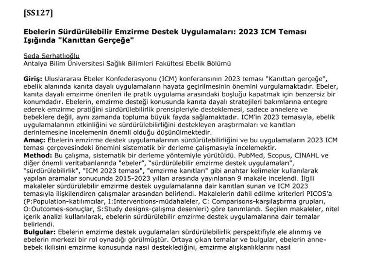 Ebelerin sürdürülebilir emzirme destek uygulamaları: 2023 ICM teması ışığında 'kanıttan gerçeğe' (209.2Kb)