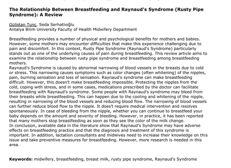The relationship between breastfeeding and Raynaud's Syndrome: A review (212.9Kb)