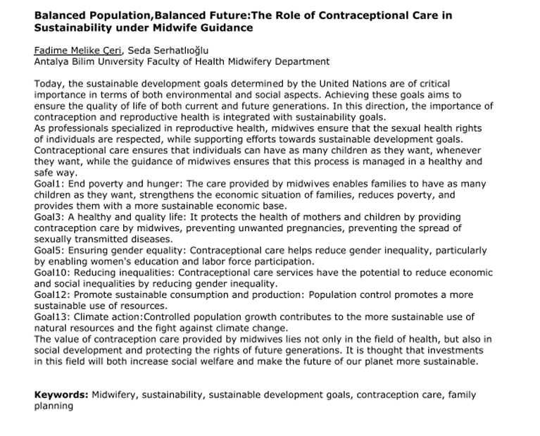 Balanced population, balanced future: The role of contraceptional care in sustainability under midwife guidance (223.6Kb)