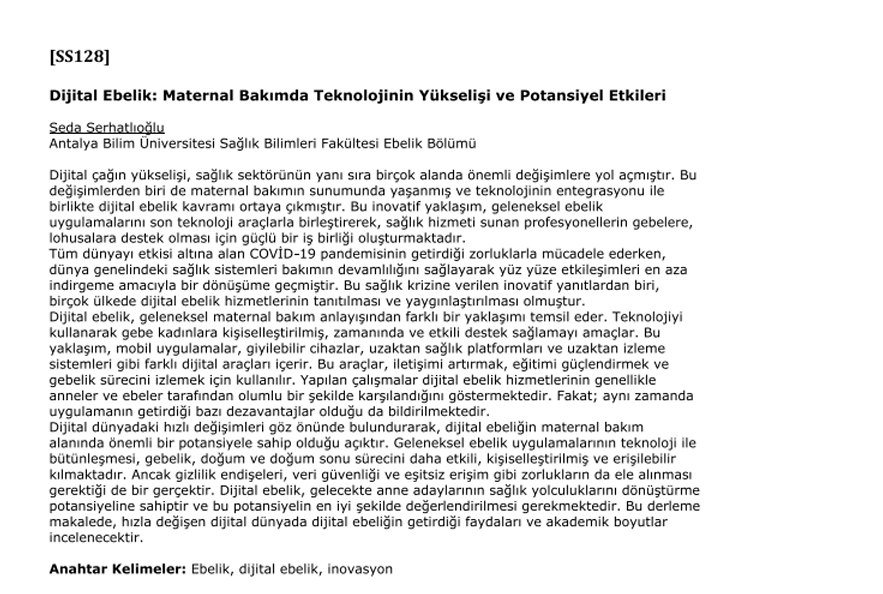 Dijital ebelik: maternal bakımda teknolojinin yükselişi ve potansiyel etkileri (228.1Kb)